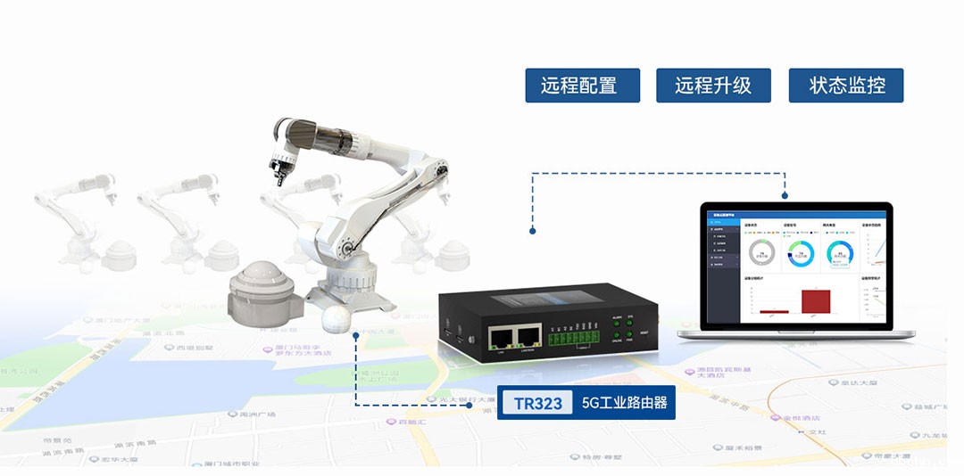 5G工业路由器TR323优米平台app下载设备管理平台多设备远程统一管理,随时随地掌控现场设备状态、设备诊断、设备调试、设备升级等智能管理。