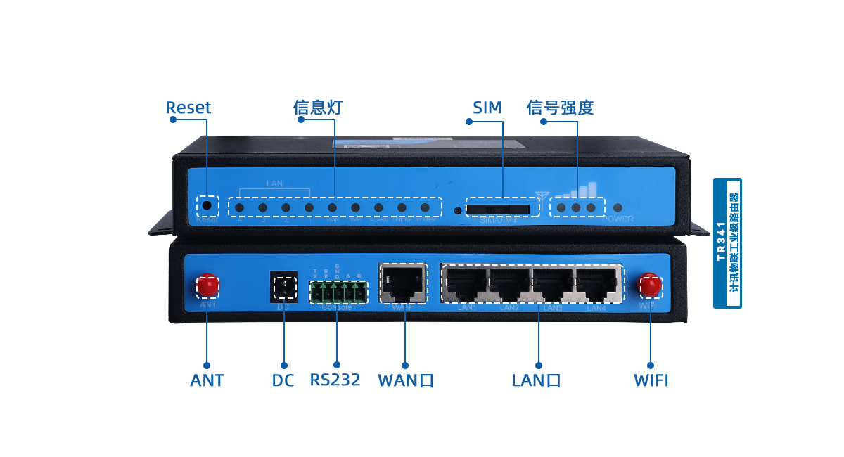 双卡工业无线路由器TR341工业无线路由器TR341是一款双卡工业无线路由器,具有无线覆盖范围广,数据传输网络稳定的特点,支持双无线备份及有线无线双备份