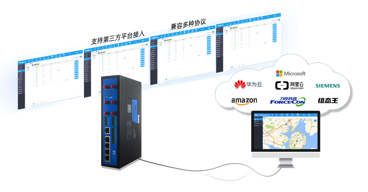 TG463 5G千兆工业路由器可兼容各种行业协议,同时可提供供通信中心入库的方式接入第三方平台或定制第三方协议。支持国内主流组态软件:组态王、三维力控、易控等组态厂家。支持包括阿里云/华为云/微软/亚马逊/施耐德/西门子等平台接入;兼容多种设备主流工业协议,如Modbus tcp/rtu、opc ua等协议。