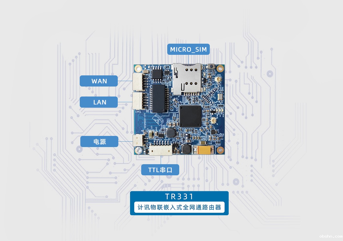 优米平台app下载TR331系列产品是一款嵌入式的全网通路由器。采用嵌入式外观设计,具有体积小,易安装,适用性强的特点,可将路由器灵活的嵌入到指定的主板上。适用于电力、环保、水利、工控等应用场景。