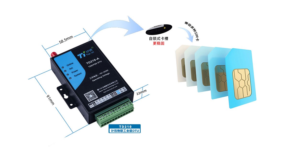 自锁式卡槽,兼容多种SIM卡,usim流量卡、APN专网卡、物联网卡;