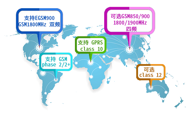 支持中国移动、中国联通的GPRS网络;支持标准RS232、RS485接口;GPS功能(选配),实时定位、追踪、寻迹。让您的设备精准定位;支持基站定位和GPS芯片定位。