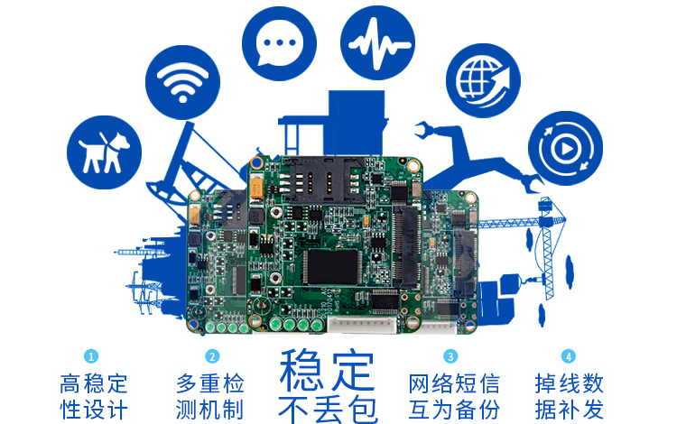 智能软件唤醒和硬件断电重启机制,设备自动复位保证正常运行;采用软件、硬件、CPU三级看门狗检测机制;多重检测机制,运行故障自修复,确保设备永久在线,适用无人值守环境;采用PPP层心跳、ICMP探测、TCP心跳链路检测机制;网络通道与短信通道相互切换,当TCP/UDP断开连接时可启用短信发送数据;掉线重连、数据补发,传输稳定、可靠不丢包。