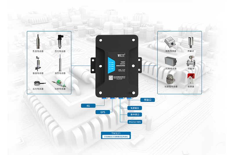 北斗GNSS接收机TN521,微米级高精度位移形变监测,支持GPS L1/L2,BD B1/B2,支持北斗三代多频段,支持串口裂缝、压力、应力、倾角、加速度、舞动传感器有线接入,支持数据采集、全网通4G通信。广泛应用于大坝、边坡、尾矿、建筑物安全等监测场景。