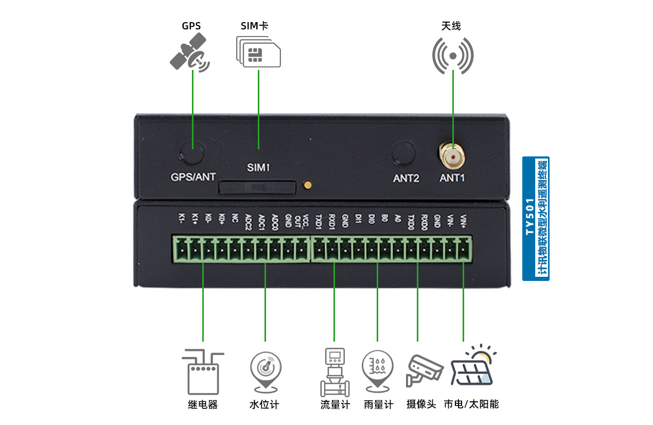 TY501微型水利遥测终端广泛应用于水文、水资源、气象、地下水、土壤墒情、智慧排水、智慧供水、山洪灾害、地灾监测、智慧农业等综合测控领域的数据采集、存储和传输。