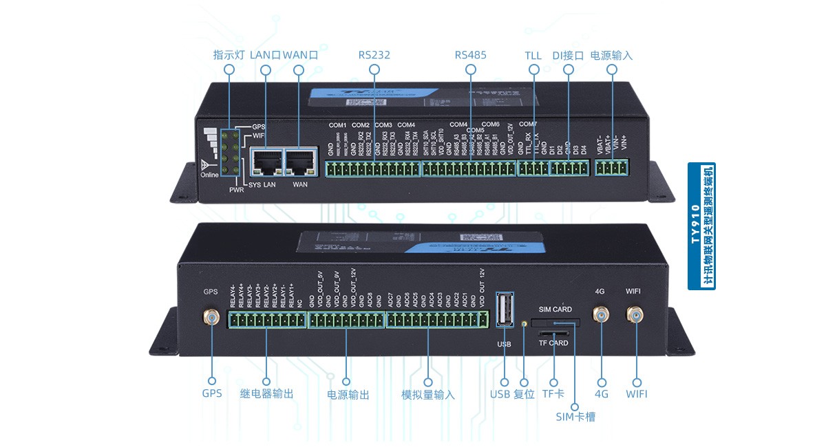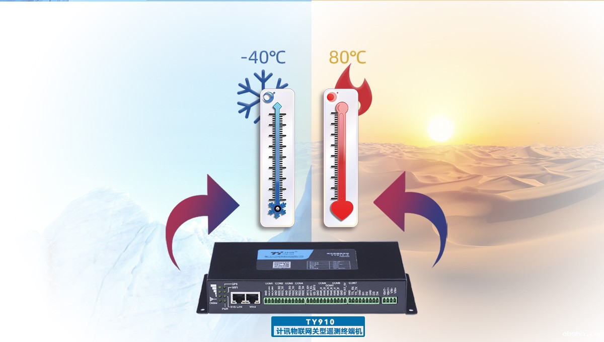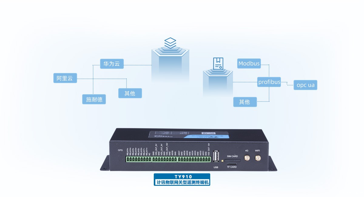 obshnTY910工业级网关型遥测终端机严格遵循水利信息化标准支持国家《水文监测数据通信规约》(ASCII和HEX全项)、《水资源监测数据传输规约》和其他省市特殊规约、SL180-2015水文自动测报系统设备遥测终端机。可同时采集雨量、水位、流量、水质、含氧量等多项水利实时数据。实现本地存储,数据导出、实时上报、远程查询等功能。