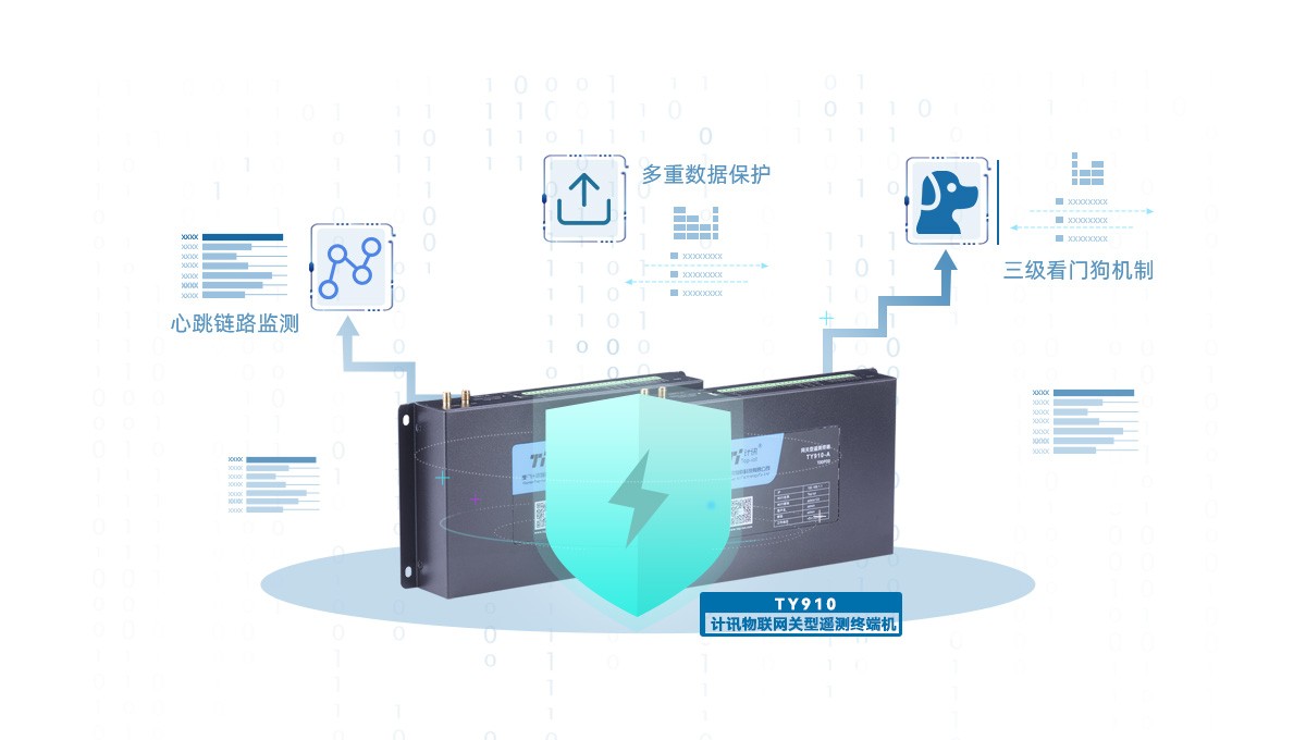 支持断电、断网续传和数据自动补发,保证数据完整性;有线、无线网络互为备份,降低通信故障概率;三级看门狗机制、心跳链路监测保护,保障数据稳定完整传输。