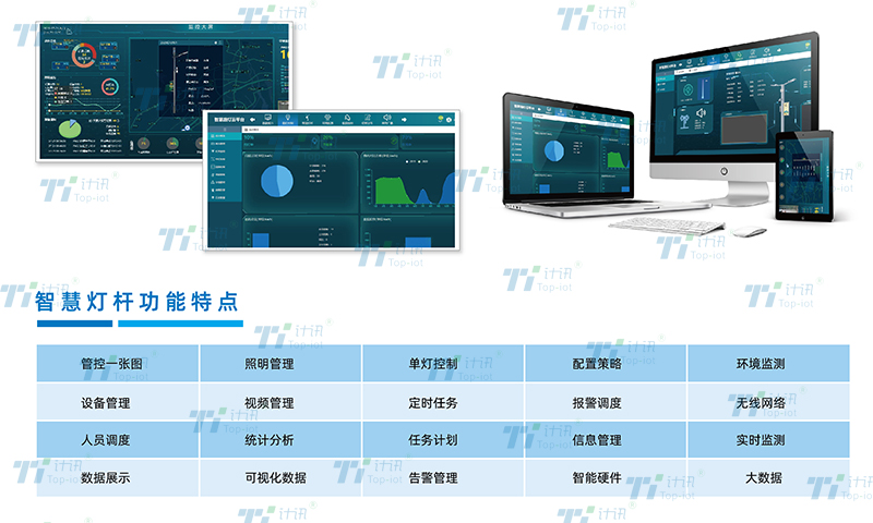 智慧灯杆系统联动联控、边缘控制,能够根据人流量、车流量等实时数据调整照明亮度和交通信号灯,从而实现更加高效的城市管理;监控摄像头、人脸识别,远程摄像头调控;led屏信息发布、智慧充电桩,为市民出行提供智慧化支持。