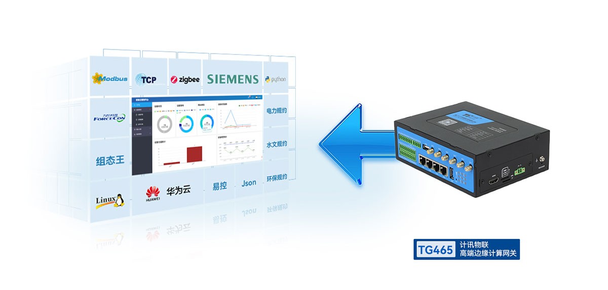 5G 高性能边缘计算网关 | TG465优米平台app下载TG465高性能物联网网关,5G+WIFI6高速网络,四核64位Cortex-A55,2GRAM、16GFLASH,1TOPS NPU,主频高达2GHZ,超强的运算能力,边缘计算,国密加密,HDMI可选、固态硬盘NVMe SSD、单模双卡可选。 -