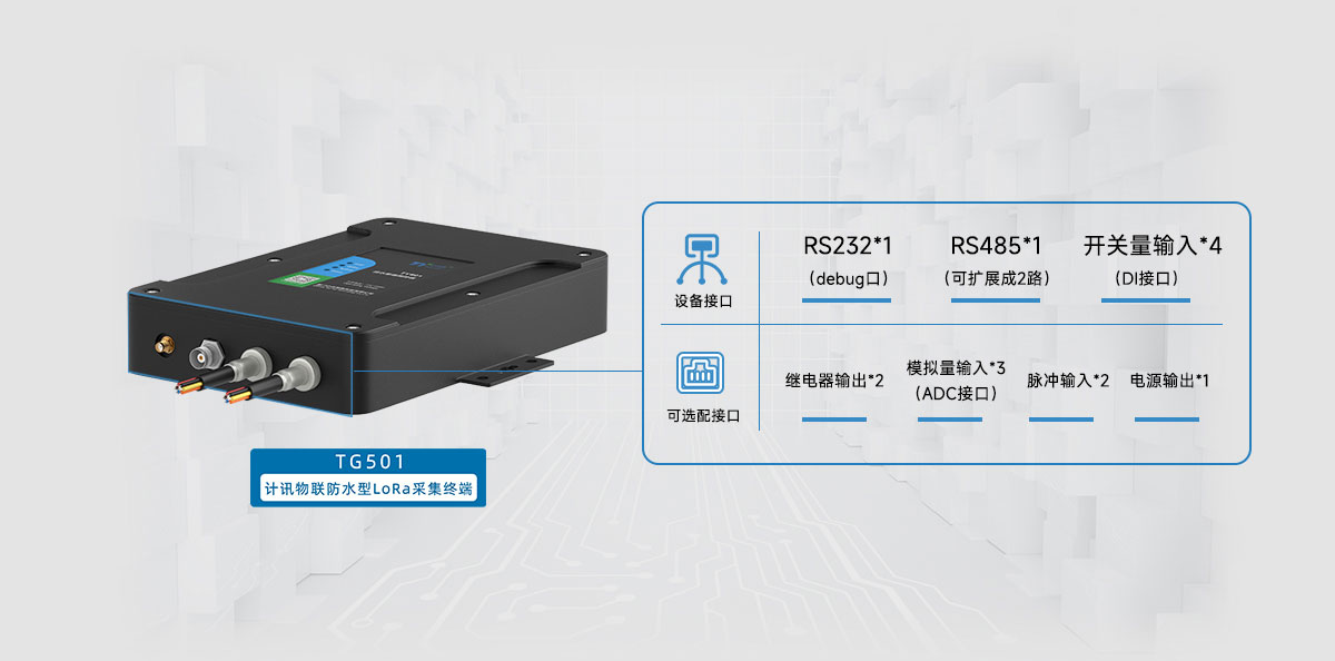 TG501,防水型lora数据采集终端RTU,IP68高等级防护等级,支持lora组网低功耗长距离传输,同时支持4G无线通信,AES数据加密安全传输,丰富协议性能稳定,远程高效管理。
