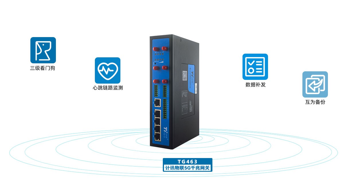 支持断电、断网续传和数据自动补发,保证数据完整性;有线、无线网络互为备份,降低通信故障概率;三级看门狗机制、心跳链路监测保护,保障数据稳定完整传输。