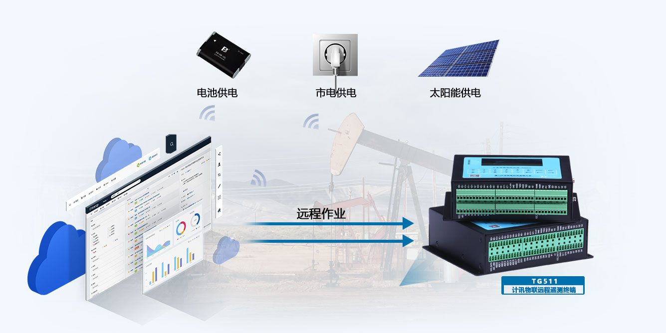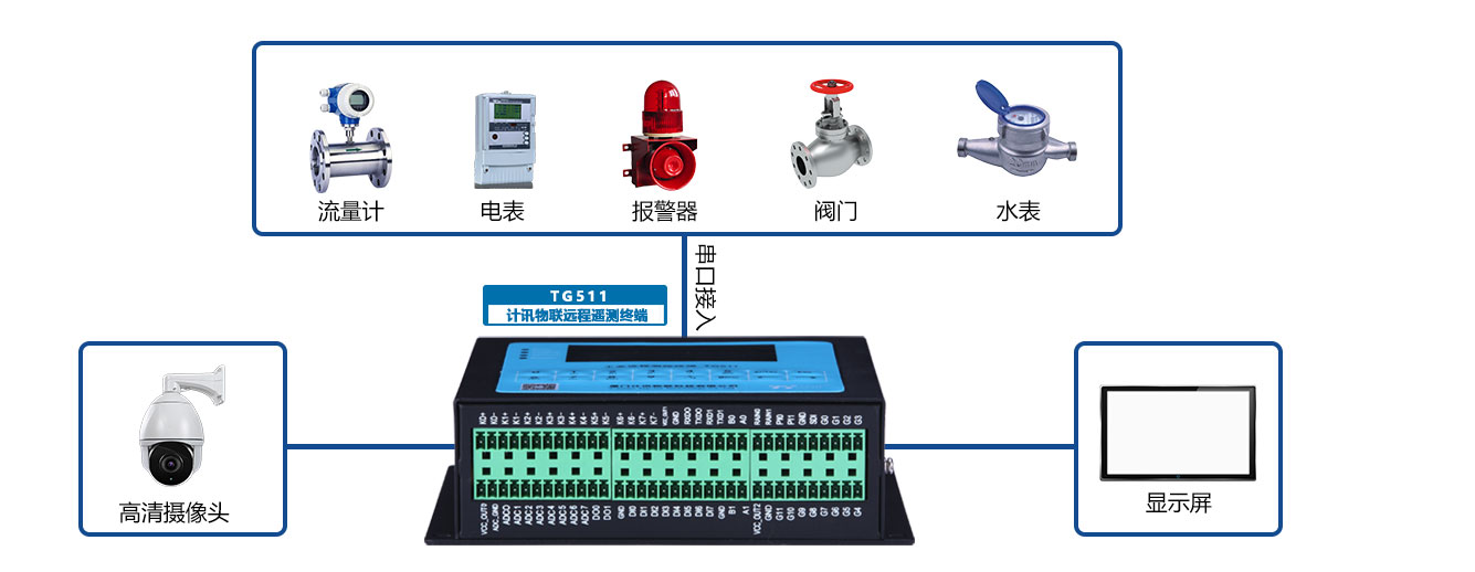 TG511远程测控终端支持各种串口数据采集,如流量、压力、电表、液位等数采集传感器。支持模拟量、开关量数据采集及继电器输出控制。支持外接显示屏,可本地人工置数功能,方便本地数据查询及显示。