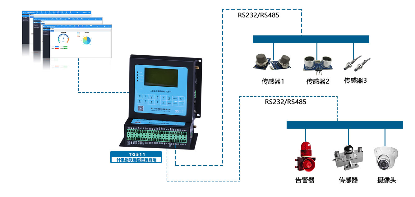 TG511系列RTU是一款集数据采集与2G/3G/4G数据传输功能于一体的工业级远程测控终端,采用嵌入式设计方式,满足多样的工业数据数据采集需求,具备模拟量输入、开关量、多路RS232和RS485接口,系统均采用安全隔离技术。