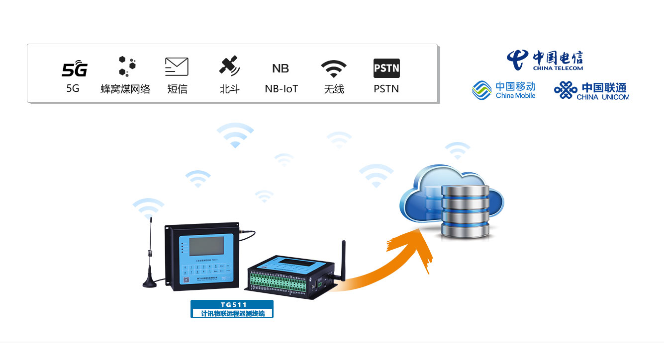 可同时支持无线蜂窝网络、短信、北斗、PSTN、超短波、ZigBee等通信方式;全面兼容中国电信、中国移动、中国联通等各大运营商的网络。更多选择,确保设备高速入网无懈可击!