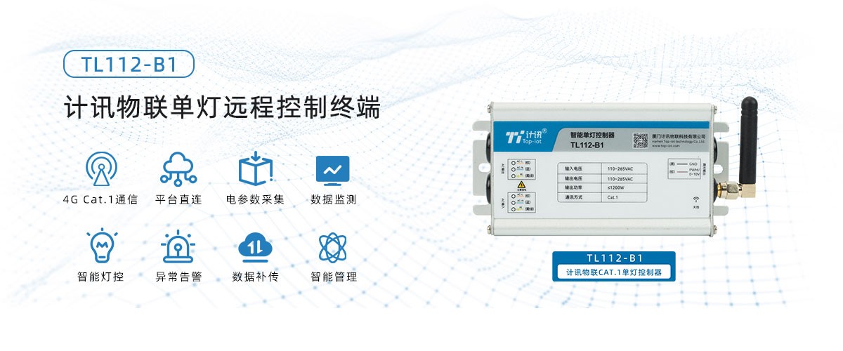 优米平台app下载单/双灯远程控制终端设备单灯控制器TL112,4G Cat.1通信,平台直连,
