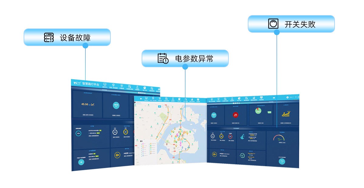 主动向管理平台和管理人员发送故障报警,第一时间故障排除、维修护理,保障照明系统正常运行。