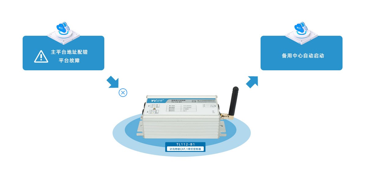 当主平台地址配错或平台故障,设备自动启动连接备用中心,保障系统正常运转。