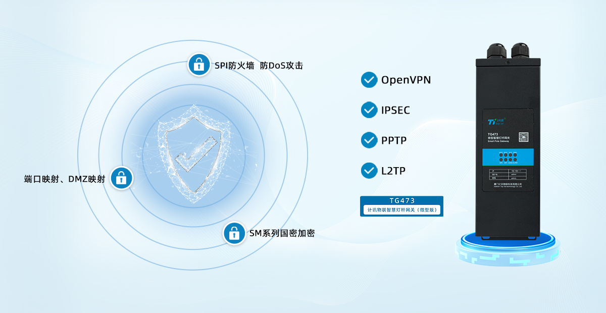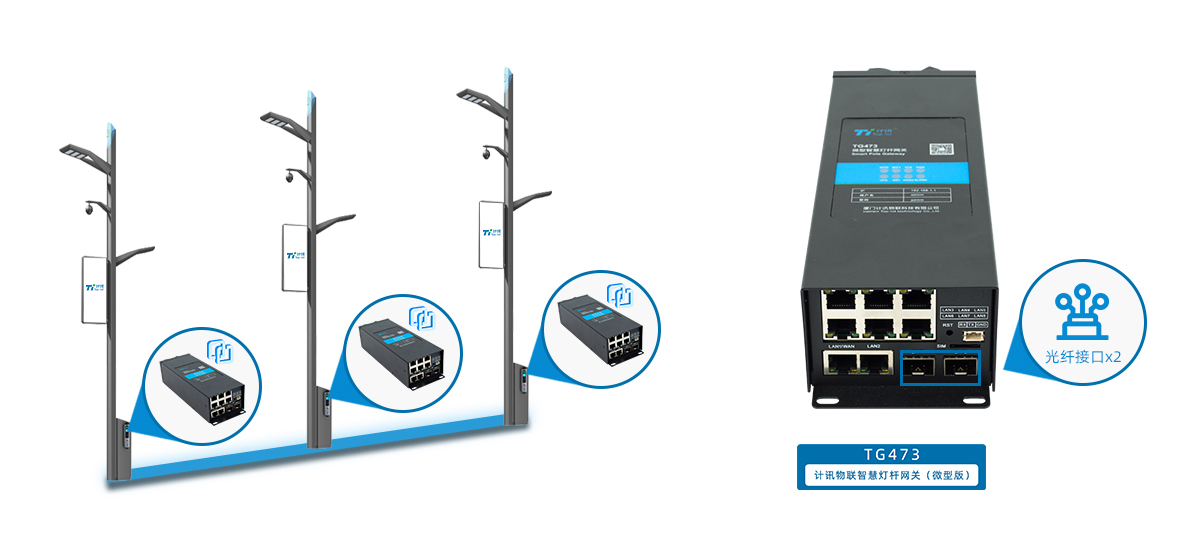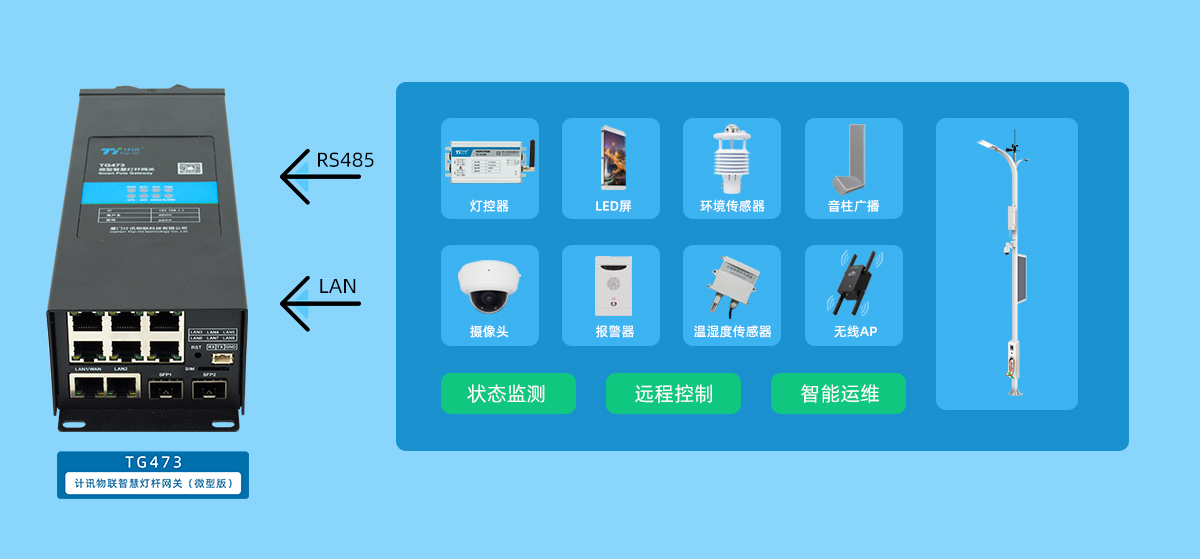 微型智慧灯杆网关TG473集数据采集、边缘计算、联网通信、联动控制、外设供电等多功能,