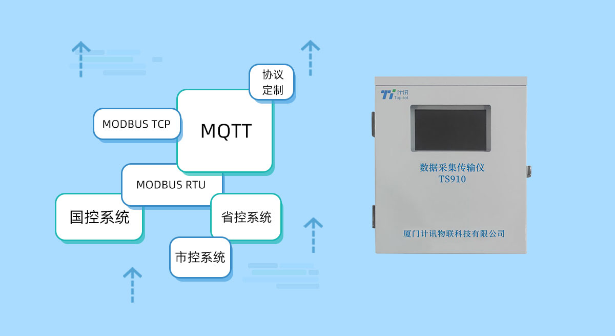 TS910系列环保监测终端,丰富接口及协议,下行前端数据自动采集、主动上云,上行对接环保监管部门、 智慧环保平台、第三方定制平台,实现水、气、噪声等环保监测、污染源工况的远程自动化全方位智能管理,工业品质性能稳定,强兼容易扩展。