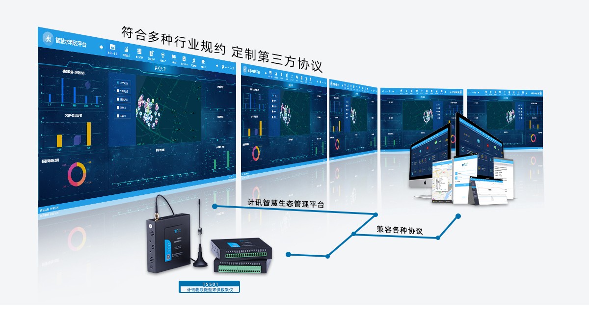TS501系列采集终端是集数据采集与2G/3G/4G数据传输功能于一体的环保微型采集仪,采用极简设计方式,满足关键的环保数据采集需求,包含:浊度传感器、PH值传感器、COD、电导率、颗粒物、SO2、氨氮、PM2.5/10、噪声等可精准采集各种污染治理设备工作状态,可对阀门、闸门、报警器等设备进行控制。同时兼容各种类型的各类水、气在线分析仪表和流量计等仪器。TS501系列产品完全符合《污染物在线自动监控(监测)系统数据传输标准》(HJ 212-2017)和(HJ 212-2005),多传输中心设计,监测数据可同时发送至各级环保局、业主及运维单位。