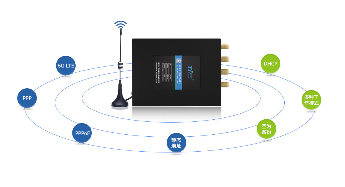小体积工业5G路由器,5G高速低延时,兼容全网通4G 3G,单模双SIM卡,双网口,RS485 RS232串口,支持多VPN数据加密传输。广泛应用于智慧工业、交通、自助机柜、电力、医疗、水利、环
