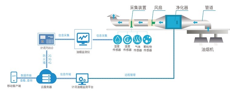 优米平台app下载油烟在线监测系统符合国家出台的相关政策和技术标准。系统利用无线通信终端RTU针对排烟管道内油烟的采样分析数据进行采集传输,以此得到排放油烟浓度的最精确量化的数据信息,并通过无线网络将餐饮业油烟排放信息自动上报污染源在线监控系统。达到油烟在线监测系统的信息化,自动化,可靠化,安全化,移动化和智能化管理。实现气体传感,温度传感,颗粒物传感,湿度传感等多方位实时监测油烟排放情况实时上传云服务器,将数据存入数据库中。