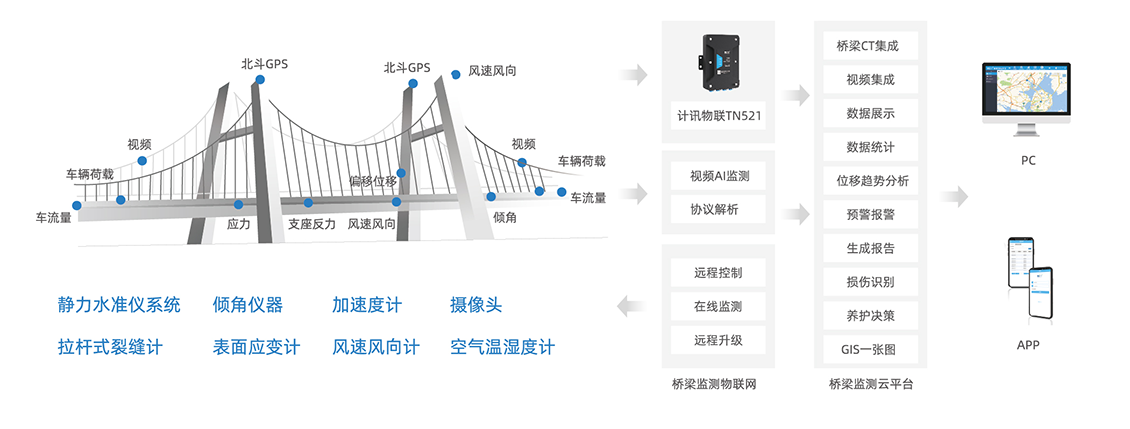 优米平台app下载桥梁安全监测平台是一个能够实时监测桥梁结构和状况的系统,它基于前端安装多个传感器和优米平台app下载GNSS接收机,接收桥梁各维度数据,对桥梁的各项参数进行平台实时监测和预判、