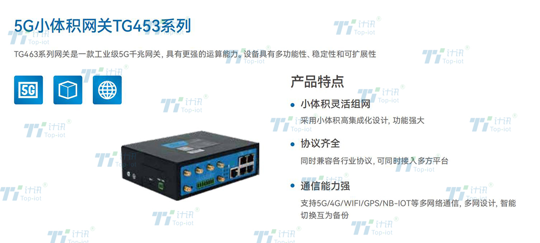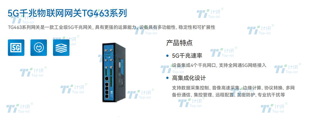 TG465高性能物联网网关,5G+WIFI6高速网络,四核64位Cortex-A55,2GRAM、16GFLASH,1TOPS NPU,主频高达2GHZ,超强的运算能力,边缘计算,国密加密,HDMI可选、固态硬盘NVMe SSD、单模双卡可选。