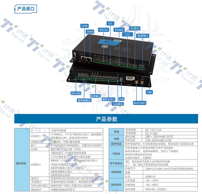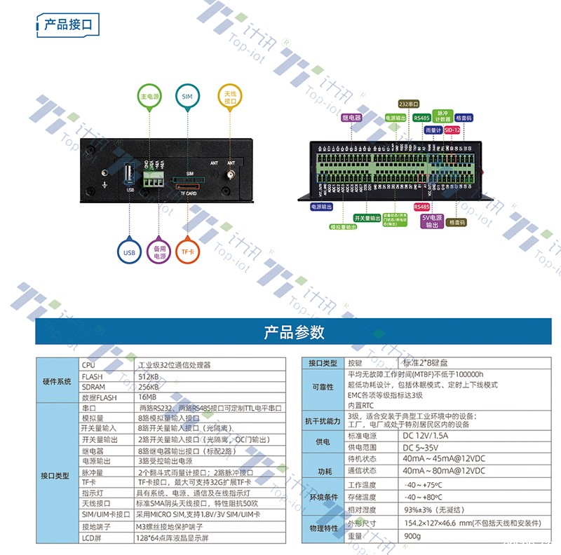 5)丰富的采集控制端口满足各种传感器的采集和控制;